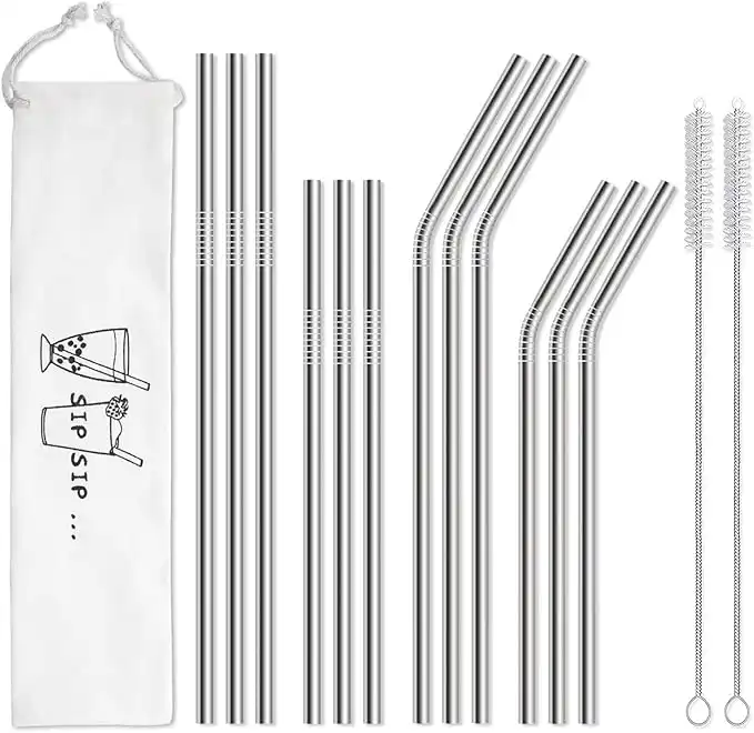 Hiware 12-Pack Reusable Stainless Steel Metal Straws with Case - Long Drinking Straws for 30 oz and 20 oz Tumblers Dishwasher Safe - 2 Cleaning Brushes Included