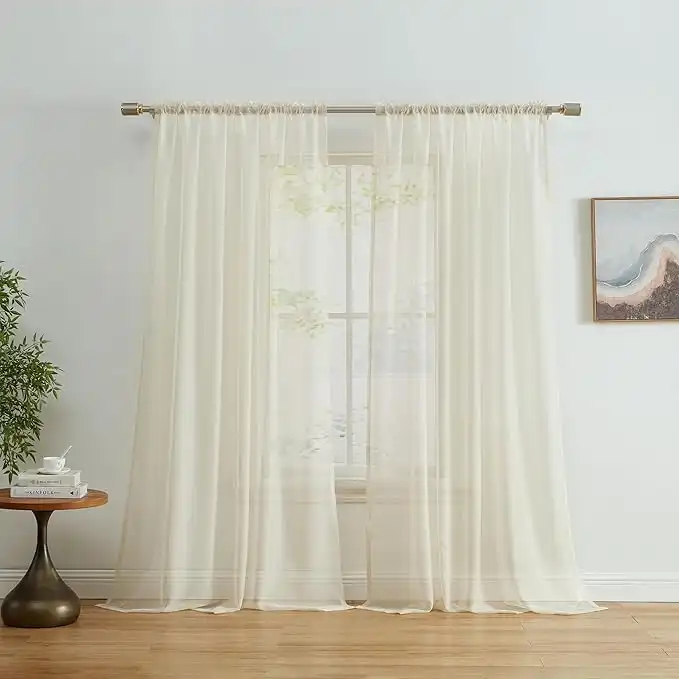 amazon.aeHLC.ME Beige Sheer Voile Window Treatment Rod Pocket Curtain Panels for Bedroom and Small Windows (54 x 63 inches Long, Set of 2)