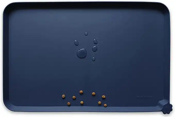 Hoki Found L Silicone Non Slip Pet Dog Cat Bowl Mats - Placemat - Waterproof Dog Cat Food Mats for Carpet - French Navy