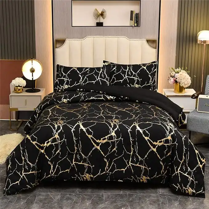 Holawakaka Gold Metallic Marble Comforter Set King Size Foil Print Glitter Bedding Sets,Black/Gold,King — Price History & Tracker | DeserTracker