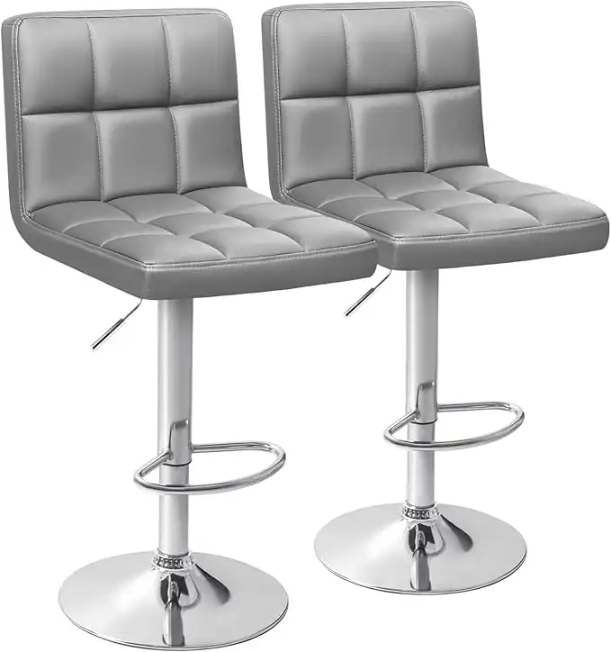 Homall Bar Stools Modern PU Leather Adjustable Swivel Barstools, Armless Hydraulic Kitchen Counter Bar Stool Extra Height Square Island Barstool with Back Set of 2 (Leather, Gray) — Price History & Tracker | DeserTracker