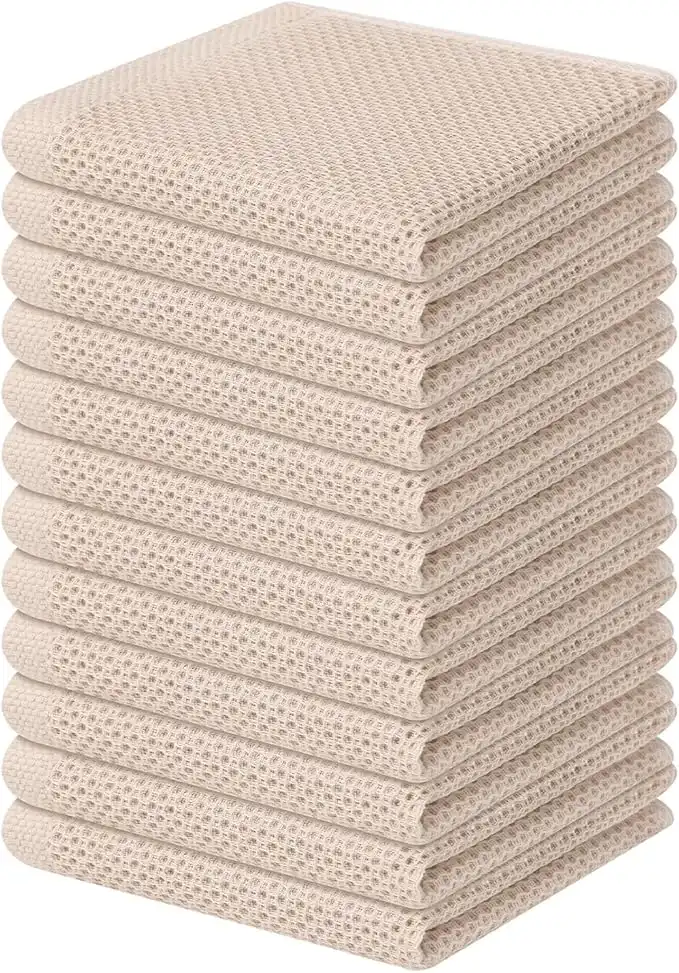 Homaxy 100% Cotton Waffle Weave Kitchen Dish Cloths, Ultra Soft Absorbent Quick Drying Dish Towels, 12 x 12 Inches, 12-Pack, Beige