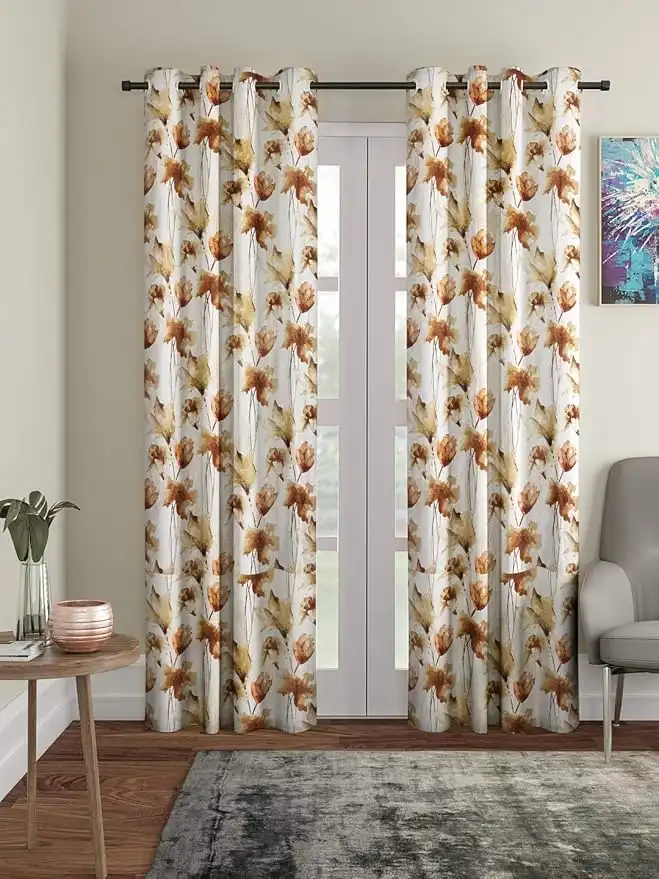 Home Sizzler 2 Pieces Abstract Flower Eyelet Polyester Long Door curtains - 9 Feet, Brown — Price History & Tracker | DeserTracker