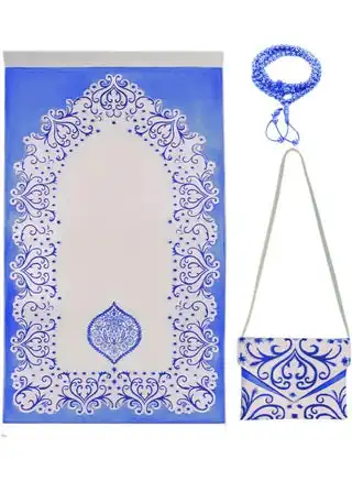 Home Smart Prayer Mat with Prayer Beads and Storage Pouch Portable Mat for Travel Ideal Gift for Men and Women