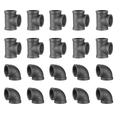 Home TZH 1" Pipe Fitting Tee & Elbow, 20 Pack Threaded Cast Black Malleable Iron Pipe Elbow/Tee for Steampunk Vintage DIY Pipe Decor Project/Furniture/Shelving Decoration (10 Tees+10 Elbows) — Price History & Tracker | DeserTracker