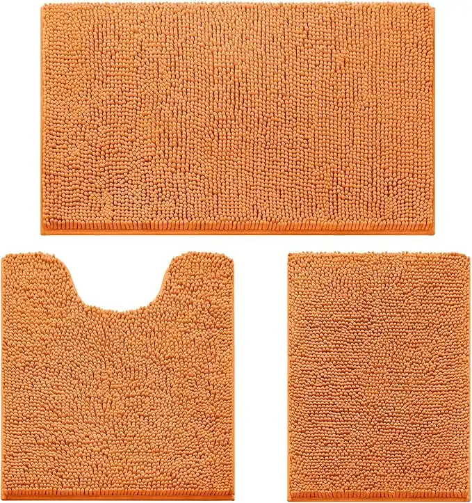 HOMEIDEAS 3 Pieces Bathroom Rugs, Ultra Soft Non Slip Absorbent Chenille Toilet Bath Mat Set (Orange)