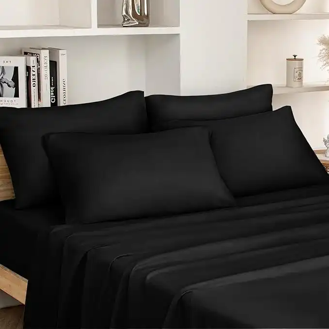 amazon.aeHOMEIDEAS King Size Bed Sheets - 6 Piece Set (Black) - Extra Soft Brushed Microfiber 1800 Bedding Sheets, Deep Pocket, Wrinkle & Fade Free