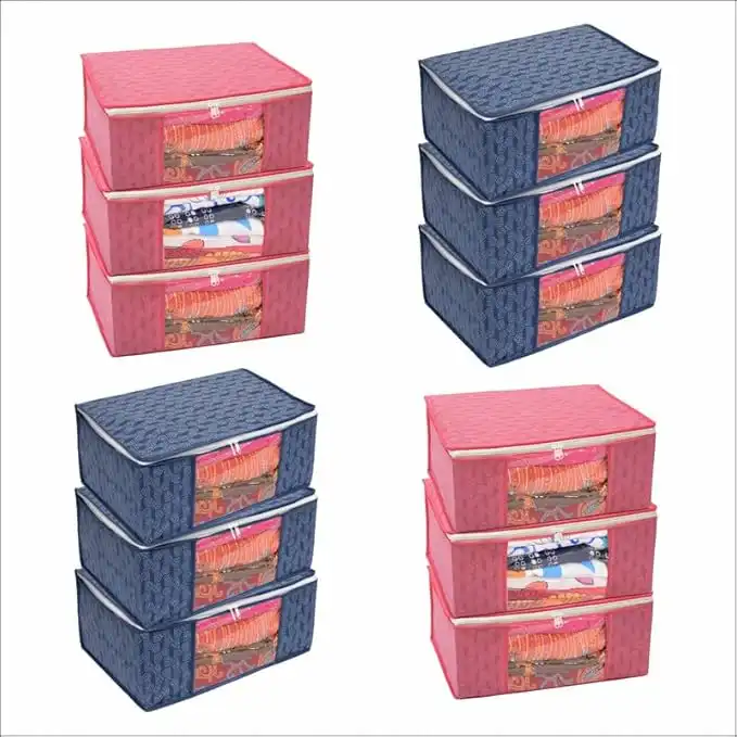 Homestrap Combo of 12 Non-Woven Printed Saree Cover/Cloth Storage/Organizer with Transparent Window(Pink & Navy Blue) — Price History & Tracker | DeserTracker