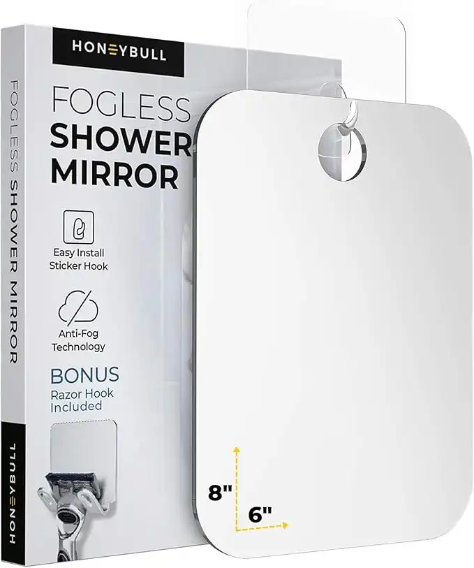 HONEYBULL Shower Mirror Fogless with Razor Hook (Medium 6x8)