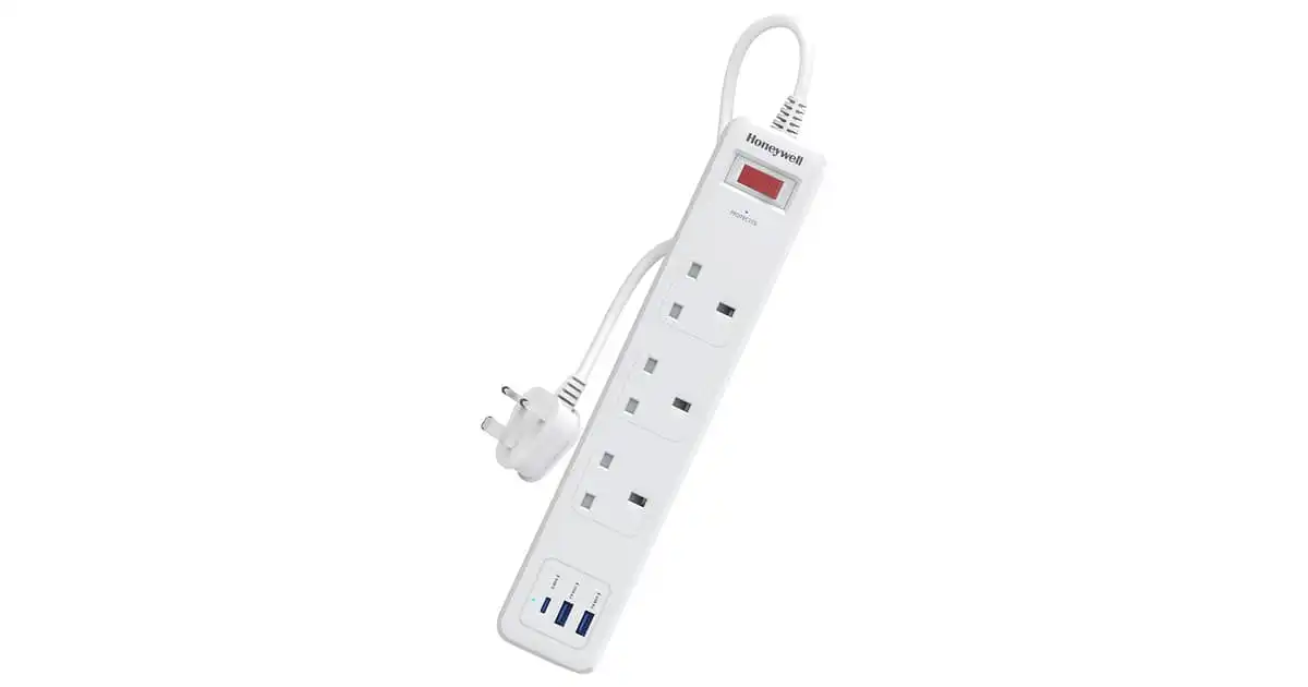 Honeywell 3 Out Surge Protector Master Switch 1.8m White