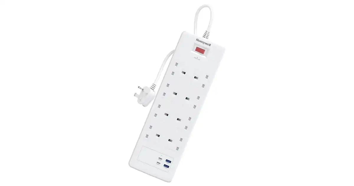 Honeywell HC000054/SRG/1.8M/WH 8 Way Surge Protector Extension Socket — Price History & Tracker | DeserTracker