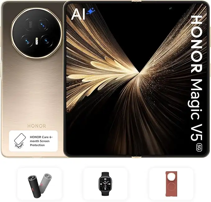 HONOR Magic V5 16GB RAM 512GB Dawn Gold With Free Honor choice Speaker, Honor Watch 4, Premium phone cover & 6 Month Screen Insurance - Middle East Version