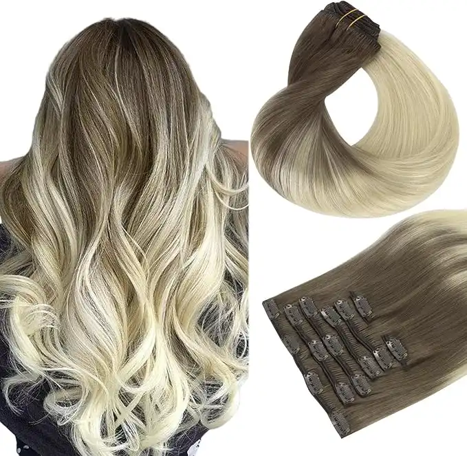 HOTBANANA Human Hair Clip in Hair Extensions, Ombre Sandy Brown to Platinum Blonde 120g Clip in Hair Extensions Real Human Hair Straight Remy Hair Clip in Hair Extensions 20 Inch 7pcs — Price History & Tracker | DeserTracker