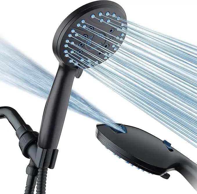 Hotel Spa AquaCare High Pressure 8-mode Shower Head Anti-clog Nozzles, Built-in Power Wash to Clean Tub, Tile & Pets, Extra Long 6 ftStainless Steel Hose, Wall & Overhead Brackets, Matte Black(2669M)