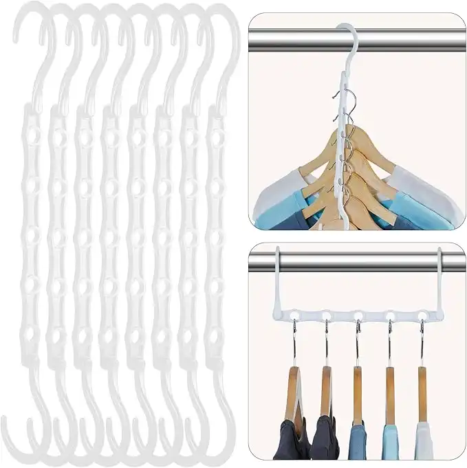 HOUSE DAY Closet Organizers and Storage, Magic Hangers Space Saving Clothes Hangers, Pack of 8 Sturdy Plastic Hangers with 5 Holes for Wardrobe Closet Organization, College Dorm Room Essentials