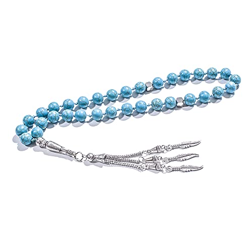 Hovaete Allah & Muhammad Islamic Prayer Rosary Misbaha Tasbeeh Sibha 99 Prayer Beads Necklace And 33 Prayer Beads Bracelet, Stone, Amazonite