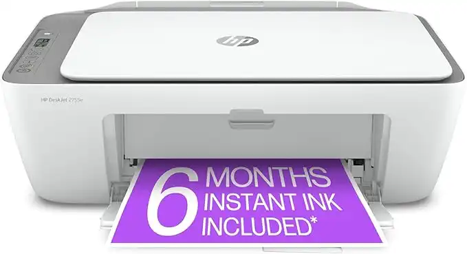 HP DeskJet 2755e Wireless Color inkjet-printer, Print, scan, copy, Easy setup, Mobile printing, Best-for home, 3 months of Instant Ink included,white