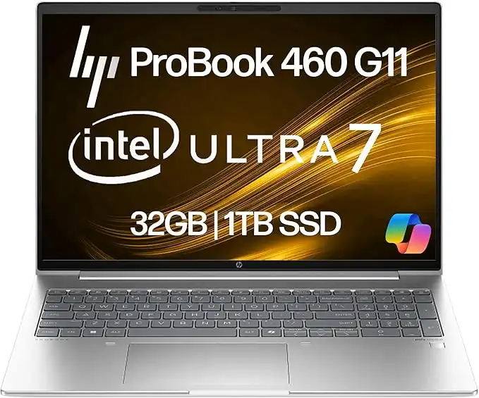 HP ProBook 460 G11 Business Laptop 16” FHD+ Display, Intel Core Ultra 7 155U (Beats i7-1355U), 32GB DDR5 RAM, 1TB NVMe, Wi-Fi 6E, RJ-45, Webcam, Backlit Keyboard, Win 11 Pro - Pike Silver Plastic