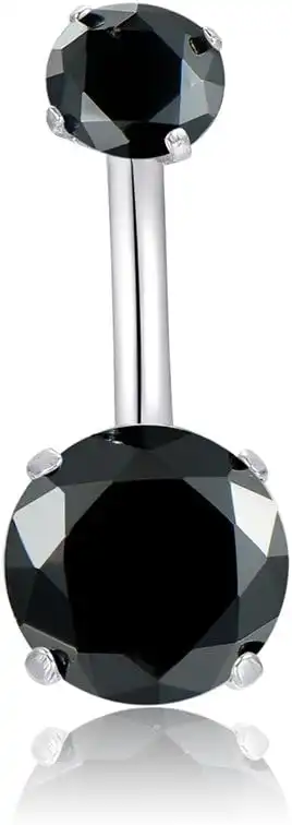 HQLA 14G Belly Button Rings Surgical Stainless Steel Round Cubic Zirconia Navel Barbell Stud Body Piercing (Black) — Price History & Tracker | DeserTracker