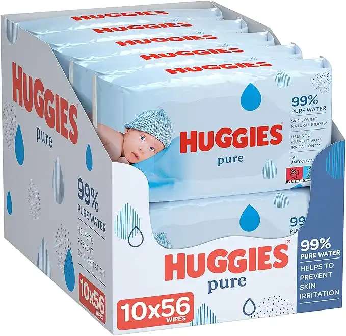 Huggies Pure Baby Wipes, 99% Pure Water Wipes, 10 Pack x 56 (560 Wipes)