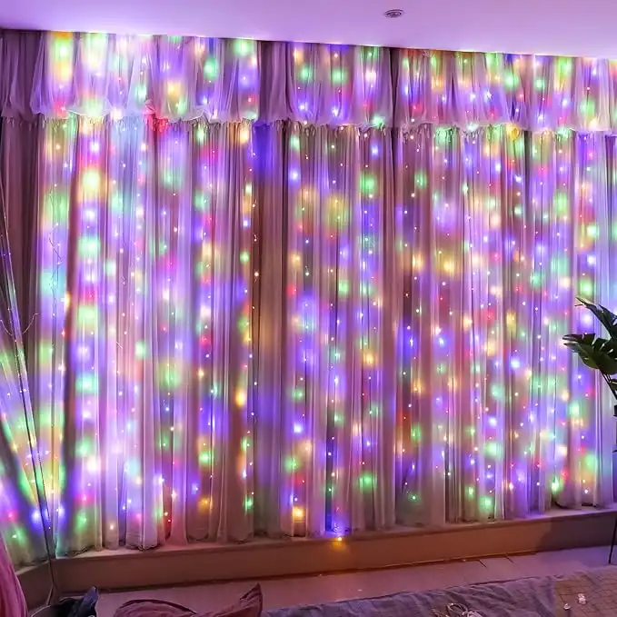 amazon.aeHXWEIYE 300LED Fairy Curtain Lights, 9.8x9.8Ft USB Plug-in 8 Modes Christmas String Hanging Lights with Remote for Bedroom Backdrop Wedding Indoor Wall Decor, Multicolor, Standard – 1 Pack
