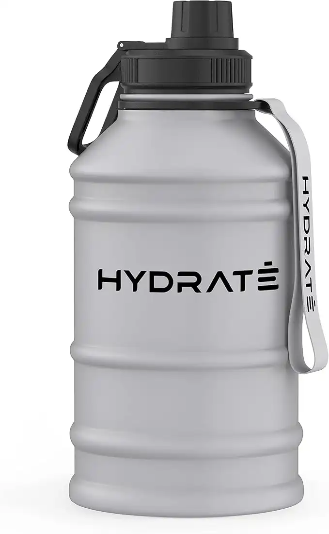 amazon.aeHYDRATE 2.2 Litre Stainless Steel Water Bottle - BPA Free Large Water Bottle - Metal Water Bottles with Convenient Nylon Carrying Strap - Leak Proof Screw Cap Gym Water Bottles for Men, Women, Adults