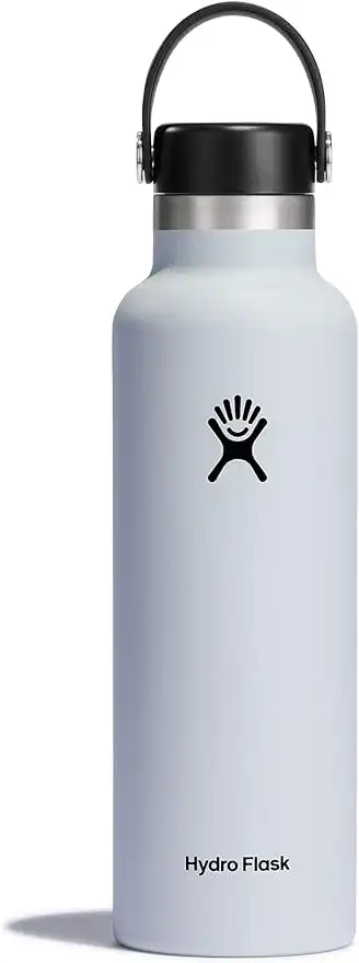 HYDRO FLASK - Water Bottle 621 ml (21 oz) - Vacuum Insulated Stainless Steel Water Bottle with Leak Proof Flex Cap and Powder Coat - BPA-Free - Standard Mouth - White