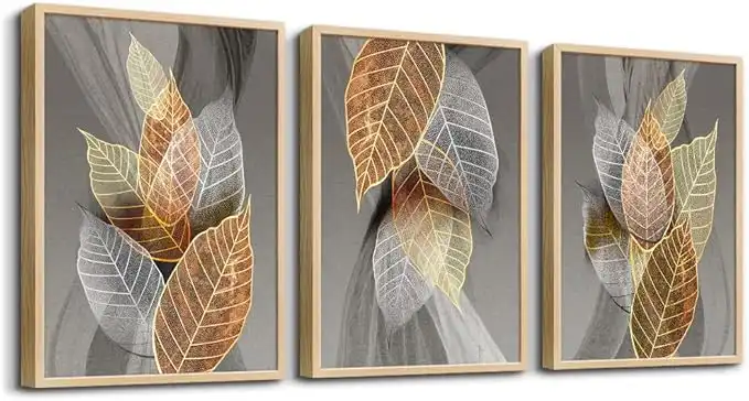 hyidecorart Natural Framed Painting Canvas Wall Art Living Room decors Modern Decor Abstract Leaves Pictures Artwork Kitchen Home of 3 Piece Prints, Natural Wood Framed) — Price History & Tracker | DeserTracker