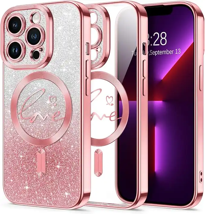Hython for iPhone 13 Pro Case Glitter, Compatible with MagSafe Love Heart Magnetic Clear Phone Cases for Women Girls, Full Camera Protection Sparkle Plating Shockproof Protective Cover, Pink — Price History & Tracker | DeserTracker