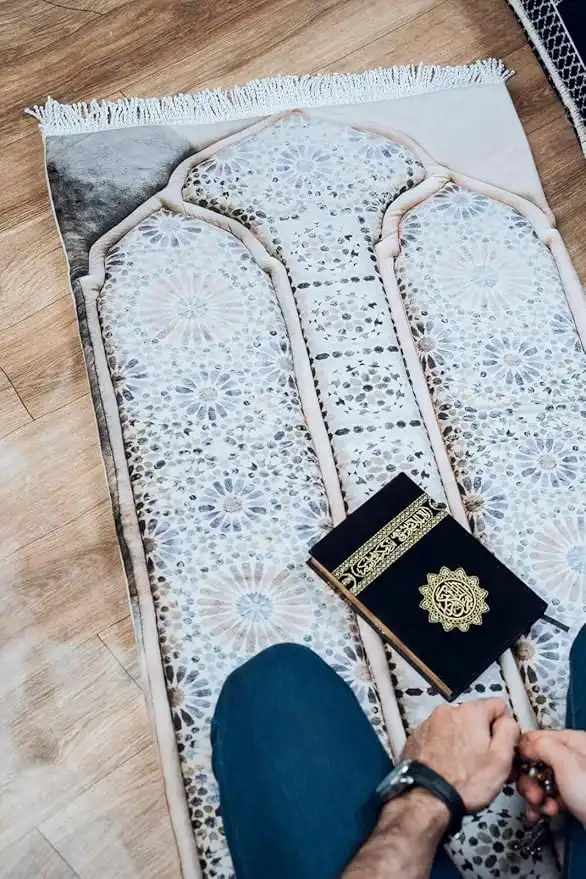 I diD Premium Prayer Mat for Adults, Ultra-Soft Islamic Mosaic Design, 110 x 70 cm, 2 cm Thick Cushioned Padding, Portable with Non-Slip Backing, Includes Rosary and Holy Quran (OFF-WHITE CREAM) — Price History & Tracker | DeserTracker