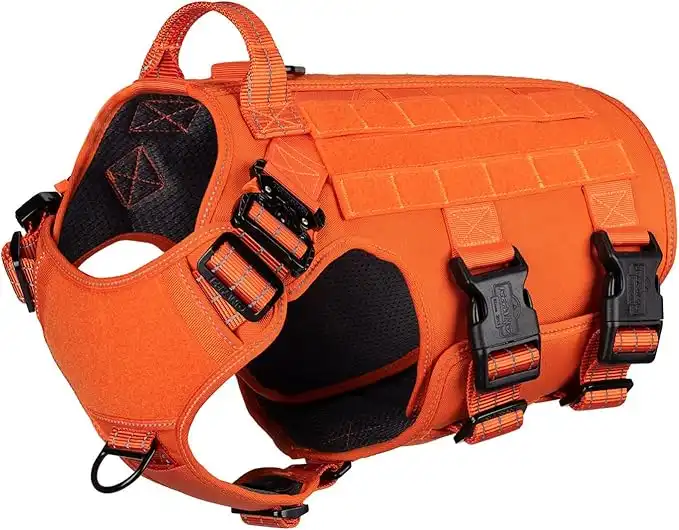 amazon.aeICEFANG GN5 Tactical Dog Harness,Hook and Loop Panels,Walking Training Work Dog MOLLE Vest with Handle,No Pulling Front Leash Clip,6 x Buckle (L (Neck:18"-24" ; Chest:28"-35"), Reflective Orange)