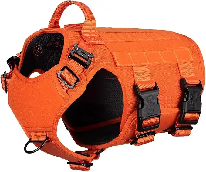 amazon.aeICEFANG GN5 Tactical Dog Harness ,Hook and Loop Panels,Walking Training Work Dog MOLLE Vest with Handle,No Pulling Front Leash Clip,6 x Buckle (M (Neck:16"-22" ; Chest:25"-31" ), Orange)