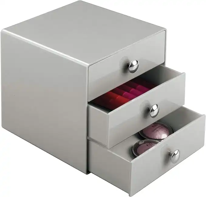 Idesign Plastic 3-Drawer Jewelry Box, Compact Storage Organization Drawers Set For Cosmetics, Dental Supplies, Hair Care, Bathroom, Office, Dorm, Desk, Countertop, 6.5" X 6.5" X 6.5", Gray — Price History & Tracker | DeserTracker