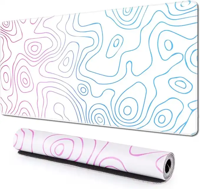 amazon.aeiLeadon Topographic Mouse Pad, Large Gaming Mouse Pad, Non-Slip Rubber Base Water-Resistant Desk Mat for Computer Keyboard, 35x 15in Extended Desk Pad with Stitched Edges for Office Gaming, White