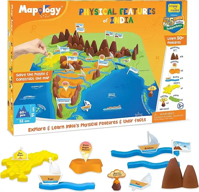 amazon.aeImagimake Kid's Mapology - Physical Features of India Learn 50+ Geographical Features Like Mountains Rivers, Plateaus Educational Toy and Learning Aid Puzzles for Age 5 Years+,Multicolor