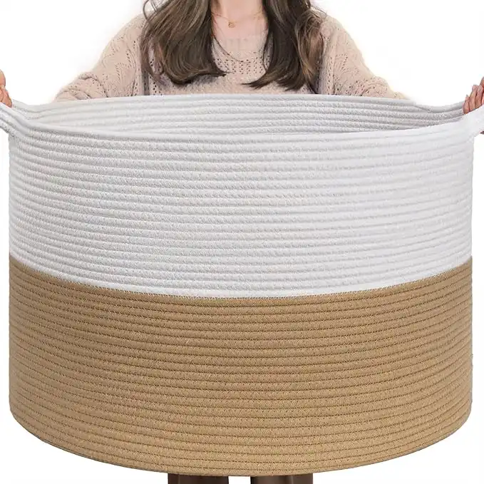 INDRESSME XXXLarge Jute Rope Basket 21.7" x 21.7" x 13.8" Woven Baby Laundry Basket for Blankets Toys Storage Basket with Handle Comforter Cushions Storage Bins Thread Laundry Hamper — Price History & Tracker | DeserTracker