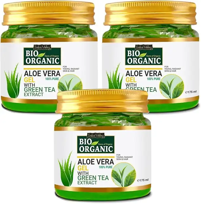 INDUS VALLEY Bio Organic Non-Toxic Aloe Vera Gel Set of 3 for Acne, Scars, Glowing & Radiant Skin Treatment (175x3=525ml)