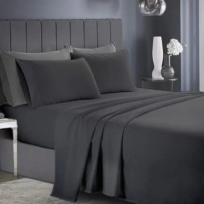 amazon.aeInfinitee Xclusives Dark Grey Queen Bed Sheet Set – 4 Piece Bed Sheet Set – Queen Size 230 cm x 260 cm - Soft Brushed Microfiber Bed Sheets - 40 cm Deep Pockets Sheets Wrinkle Free & Fade Resistant