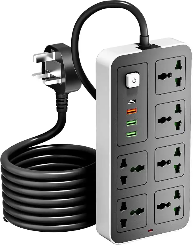 INFLUX 6-Outlet 3M Extension Cord with USB Ports and C-type, Surge Protector & Multi-Plug Adapter, Power Extension Cable, USB Hub with Smart and Socket - Perfect for Gaming with 13A Fused Plug
