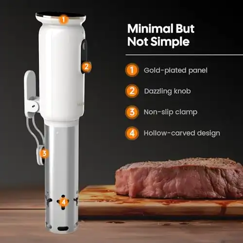 INKBIRD WiFi Sous Vide Machine ISV-101W 1000 Watts Sous Vide Cooker 3D Water Circulation Heating with App Preset Menus Cooking Booking Function Cooking Completion Pre-alarm (Orange)