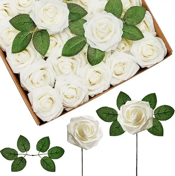 InnoGear Artificial Roses Flowers, 50 Pcs Ivory Fake White Roses for Decoration DIY Wedding Bouquets Centerpieces Bridal Shower Party Valentine's Day Christmas Xmas — Price History & Tracker | DeserTracker