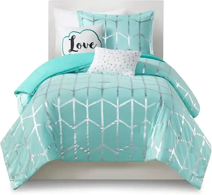 Intelligent Design Raina Twin/Twin XL Comforter Set, Soft Microfiber Comforter Set Twin, Modern Geometric Metallic Bed Set, 4 Pieces College Bedding Comforter Set with 1 Sham, 2 Toss Pillows Aqua — Price History & Tracker | DeserTracker