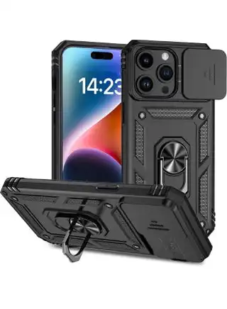 iPhone 15 Pro Max Case, Slide Camera Cover, Built in 360° Rotate Ring Kickstand, Drop Proof Shockproof Test, Heavy Duty Shockproof Protective Case for iPhone 15 Pro Max 6.7 inch Black