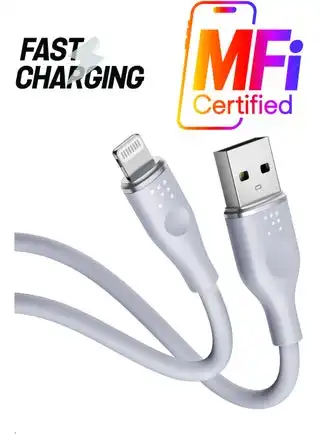noon.comiPhone Fast Charging USB-A to Lightning Cable – 1.2m, 3A, Zinc Alloy Connector, Durable & Flexible, Withstands 25,000+ Bends and 10,000+ Plug Tests, Tangle-Free, High-Speed Data Sync, Compatible with iPhone 14/14 Pro/14 Pro Max/14 Plus/13/12/11/XS/XR/X/8 Plus, iPad – Grey