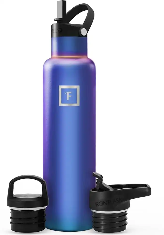 IRON °FLASK Sports Water Bottle - 24 Oz, 3 Lids (Straw Lid), Leak Proof, Vacuum Insulated Stainless Steel, Hot Cold, Double Walled, Thermo Mug, Standard Metal Canteen - Aurora — Price History & Tracker | DeserTracker