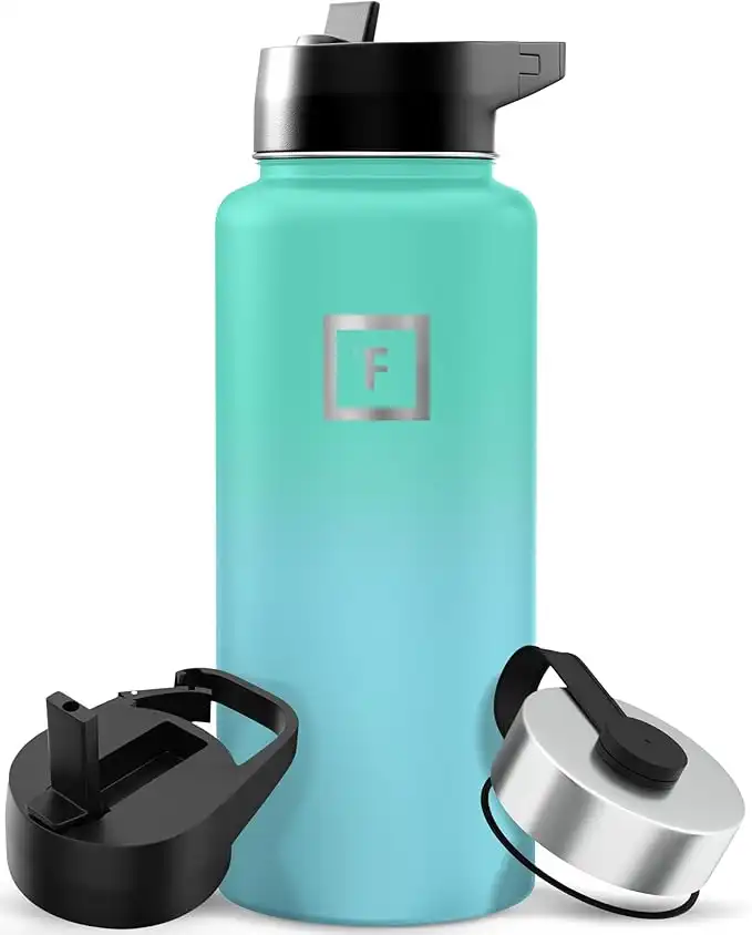 IRON °FLASK Sports Water Bottle - 32 Oz 3 Lids (Straw Lid), Leak Proof - Stainless Steel Gym & Sport Bottles for Men, Women & Kids - Double Walled, Insulated Thermos, Metal Canteen