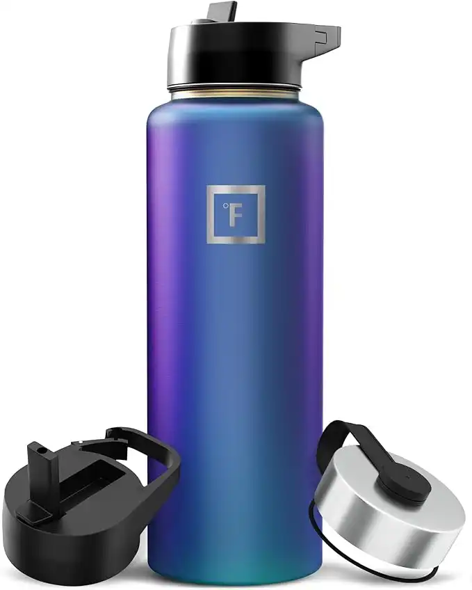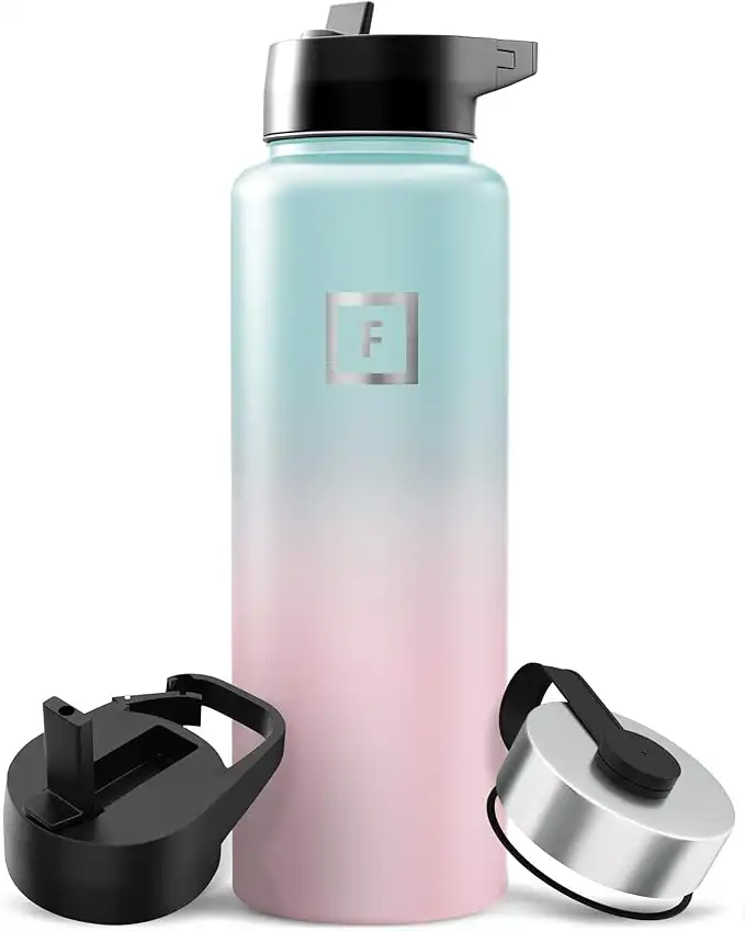 amazon.aeIRON °FLASK Sports Water Bottle - 40 Oz, 3 Lids (Straw Lid), Leak Proof, Vacuum Insulated Stainless Steel, Double Walled, Thermo Mug, Metal Canteen - Aurora