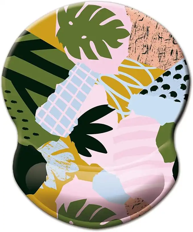 ITNRSIIET Ergonomic Mouse Pad with Gel Wrist Support Small Wrist Rest Smooth Surface Non-Slip PU Base Comfortable Office Supplies Pain Relief, 8.7 x 7.2 inches, Abstract Leaves