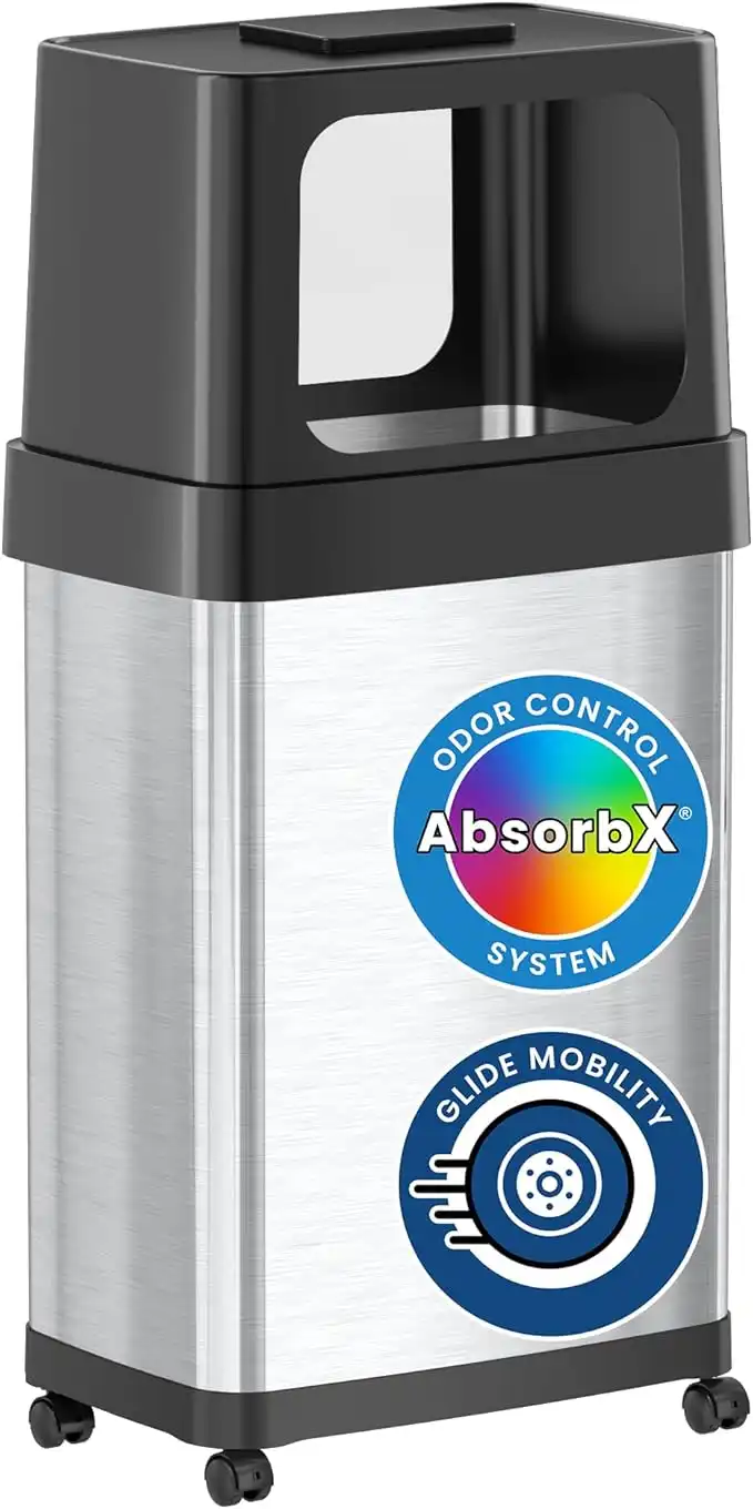 amazon.aeiTouchless 18 Gallon Dual Push Open Trash Can with Wheels and AbsorbX Odor Filter, 68 Liter Swing Flip Doors Rectangular Stainless Steel Garbage Bin, Perfect for Restaurant, Business, Home Kitchen