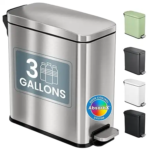 iTouchless 3 Gallon SoftStep Bathroom Trash Can with Lid and Odor Filter, Removable Inner Bucket, Stainless Steel Small Wastebasket Slim Garbage Bin for Home Office Bedroom Living Room